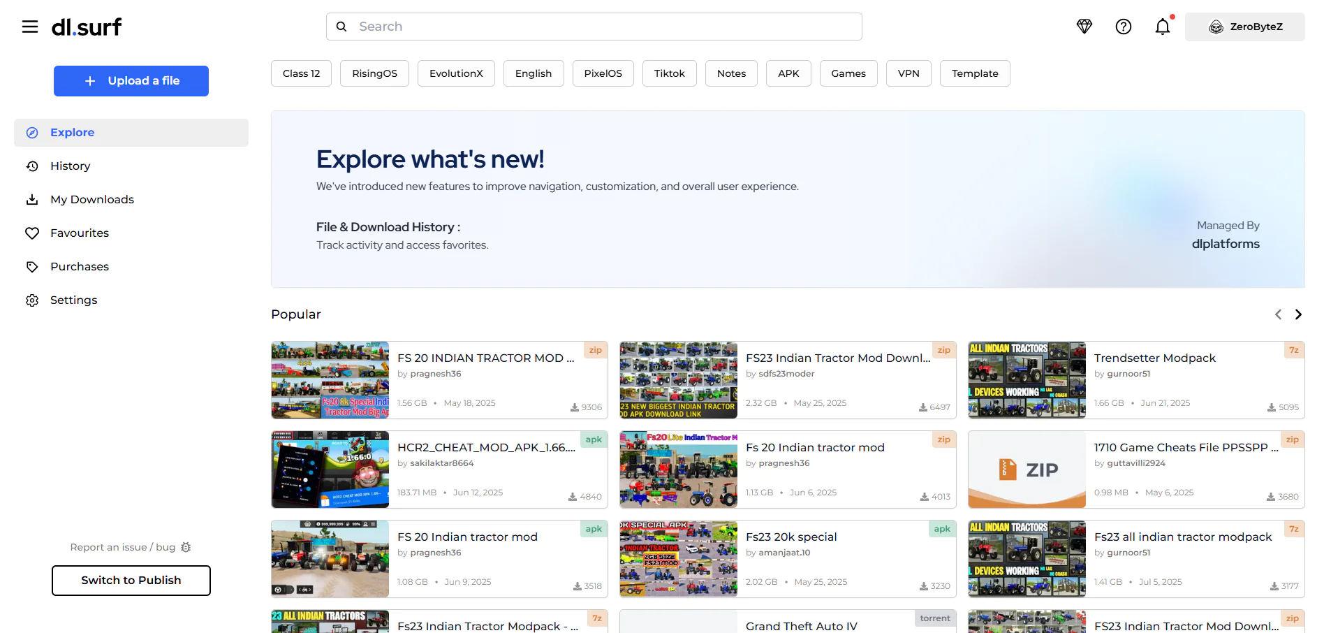 dl.surf is a cloud file-sharing platform that lets you upload files, share download links, and get paid when people download them.